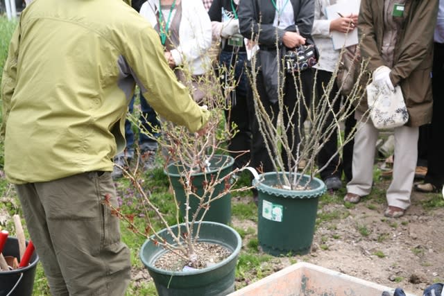 昨日は鉢バラを二鉢、解説しながらの剪定。