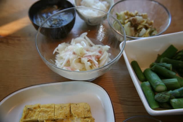 コテージでも、やっと、巨大アスパラの芽が出てきました。