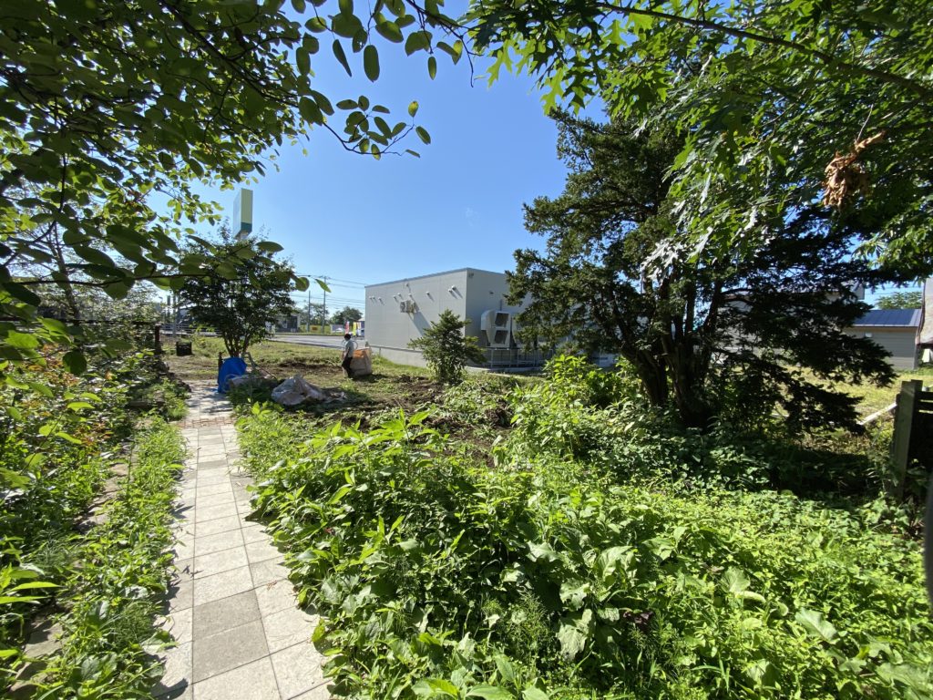 ささやかな家庭菜園の場所はイタドリまで進出するワイルドなエリアになっていました。