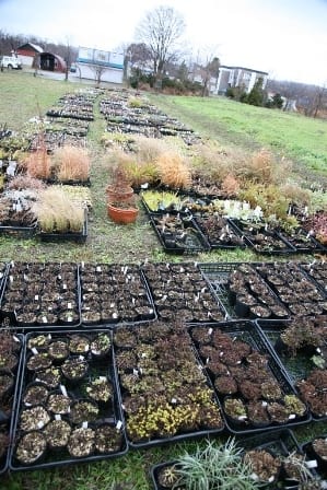 宿根草はこのように地べたに置き、そのまま雪の下になるのを待っています。二か所に置きました。