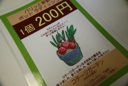 教室参加の皆さんに「ポットにはいたままのラディッシュ、野菜コーナーにあったらどお?」とリサーチしたら「買いたい!!」って。